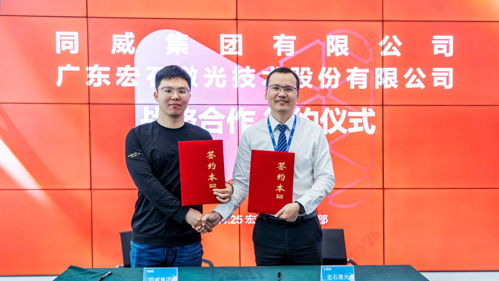 2024年10月25日,宏山激光與同威集團有限公司在佛山總部基地隆重舉行戰(zhàn)略合作協(xié)議簽署儀式。同威集團董事長安鵬飛與宏山激光業(yè)務副總裁張洪濤率領(lǐng)的團隊共同見證戰(zhàn)略協(xié)議簽署,雙方圍繞合作內(nèi)容展開了深入交流。會談中,同威集團介紹了其在裝備制造領(lǐng)域的市場布局、技術(shù)研發(fā)成果及未來發(fā)展規(guī)劃,全面展現(xiàn)了其在行業(yè)中的核心競爭力。宏山激光則詳細闡述了在激光智能裝備領(lǐng)域的技術(shù)創(chuàng)新、產(chǎn)品優(yōu)勢以及未來發(fā)展戰(zhàn)略。雙方一致認為,基于各自領(lǐng)域的技術(shù)優(yōu)勢和資源互補,深化合作將為激光裝備行業(yè)帶來更多創(chuàng)新動力,同時為制造業(yè)的智能化轉(zhuǎn)型和高質(zhì)量發(fā)展注入新的活力。此次戰(zhàn)略合作的達成標志著雙方將攜手邁向共贏新局面,共同推動行業(yè)升級與技術(shù)進步。