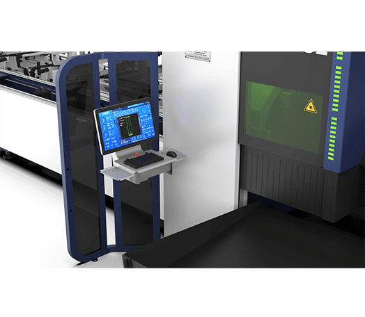 藍(lán)光對(duì)管材進(jìn)行掃描,自動(dòng)尋找管材中心點(diǎn),提升切割精準(zhǔn)度。