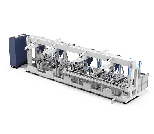 下料架配置1個(gè)隨動(dòng)翻板+2個(gè)可前后移動(dòng)、升降的隨動(dòng)凹輪,可根據(jù)工件的長(zhǎng)度智能調(diào)節(jié)位置,在切割與下料過程中提供穩(wěn)定支撐。